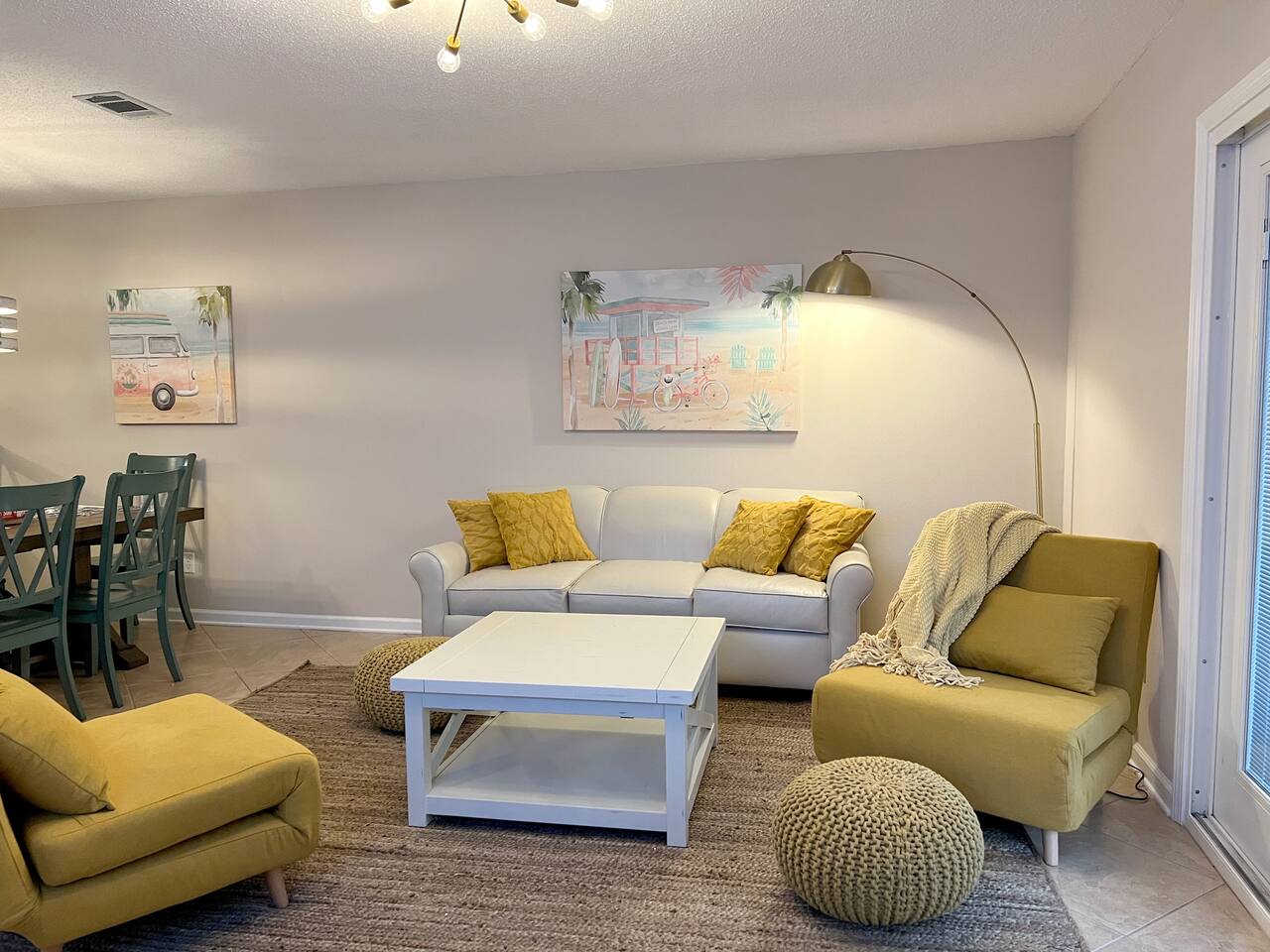 Everything is within walking distance, not only to the beach, but to everything you need for a perfect vacation: the convenience store, spa, bar and grill, hair and nail salon, gulf cart rentals, Surf Hut restaurant with an ocean view, and the Alvin's store. If that's not enough, theres a whole mall plaza less than 2 miles away.