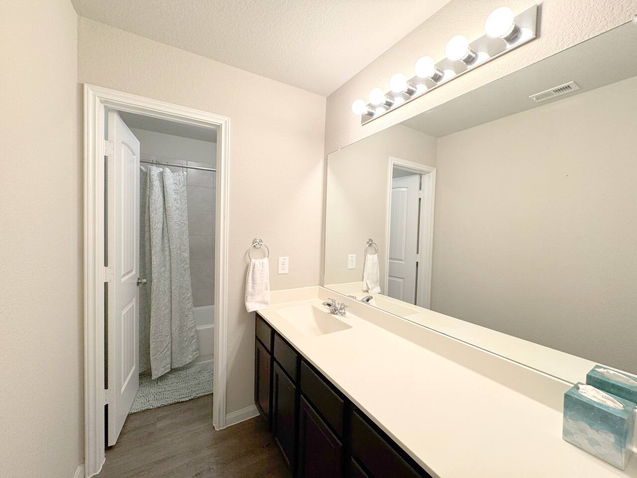 This modern 4br house is located in a newly built community of Brooklyn Trails in Porter TX with a community playground and a pool only minutes away from Lake Houston Wilderness Park, Kingwood, I-69 and Grand Parkway (TX-99) • Modern design and squeaky clean • Fully stocked kitchen • 4K TV in every room (75" in living) • 4 king beds • Space for a crib • 2 work spaces • 2 car garage • Game room with a pool • Wide driveway that can fit 4 cars • Fully fenced backyard with a firepit • Pets OK!