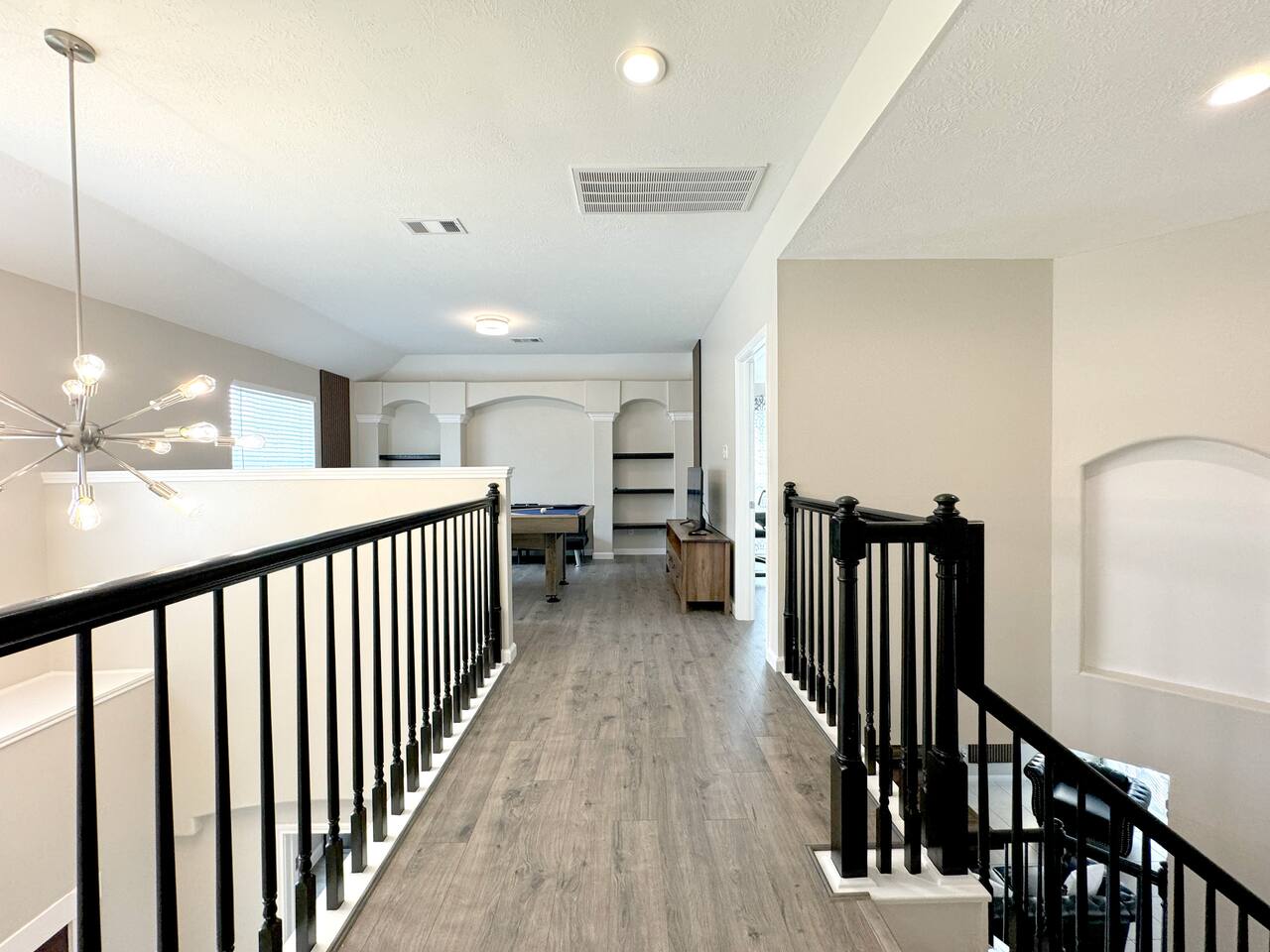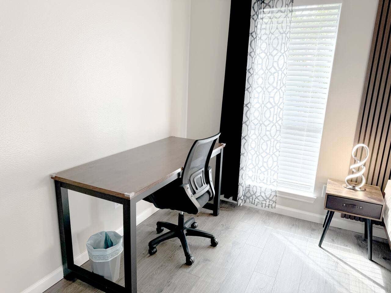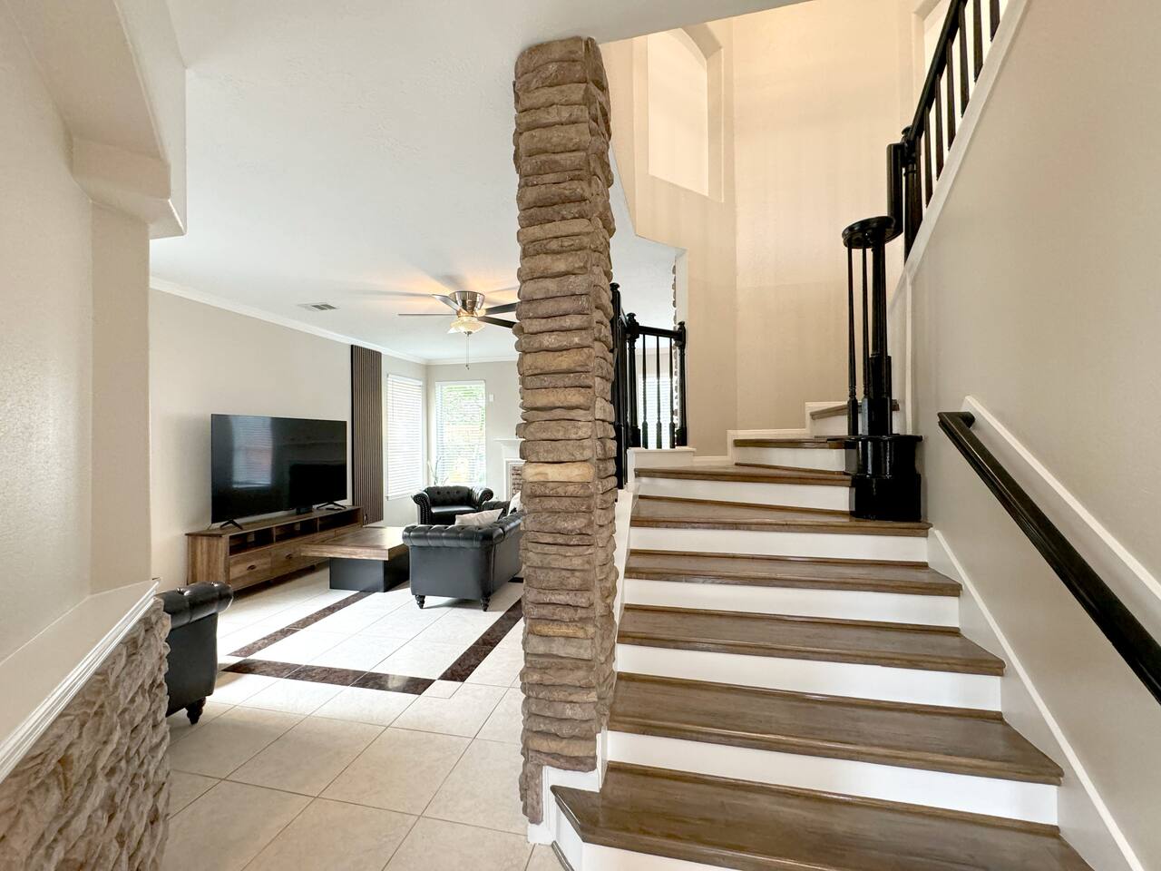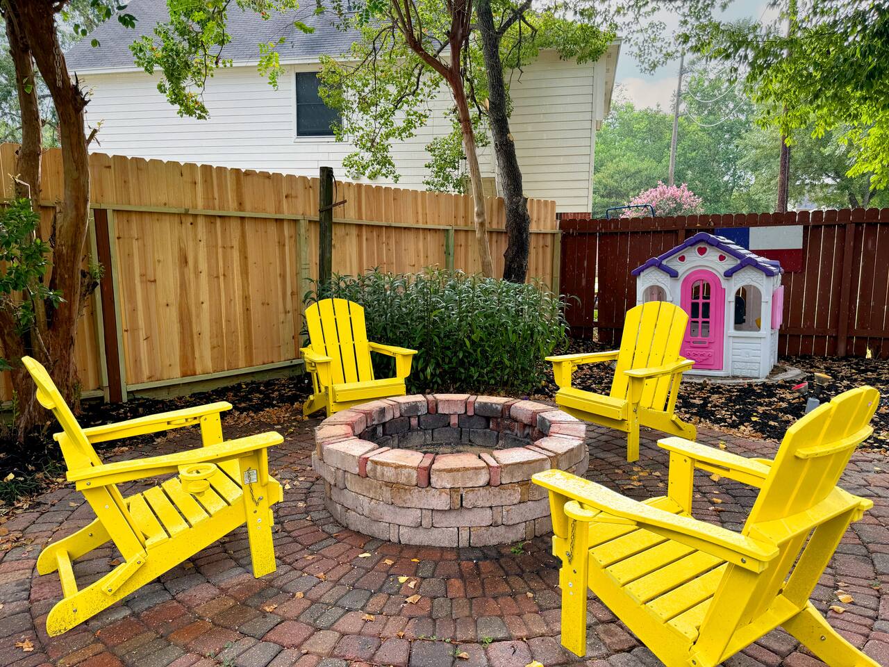 · Located in the quiet, safe neighborhood of Imperial Oaks, 3 miles from The Woodlands · On a cul-de-sac with a private pool, pool and hot-tub · 5 Bedroom, 2.5 Bathroom house recently renovated · 3 king beds, bunk bed and rollaway bed if you want to convert office back into 5th room. · 75" 4K TV and 4K TVs in every bedroom · Fully stocked kitchen · 3 workspaces with ergonomic chairs · Private backyard with mature trees, outdoor dining area, and a fire pit · Pet-friendly (with a fee)