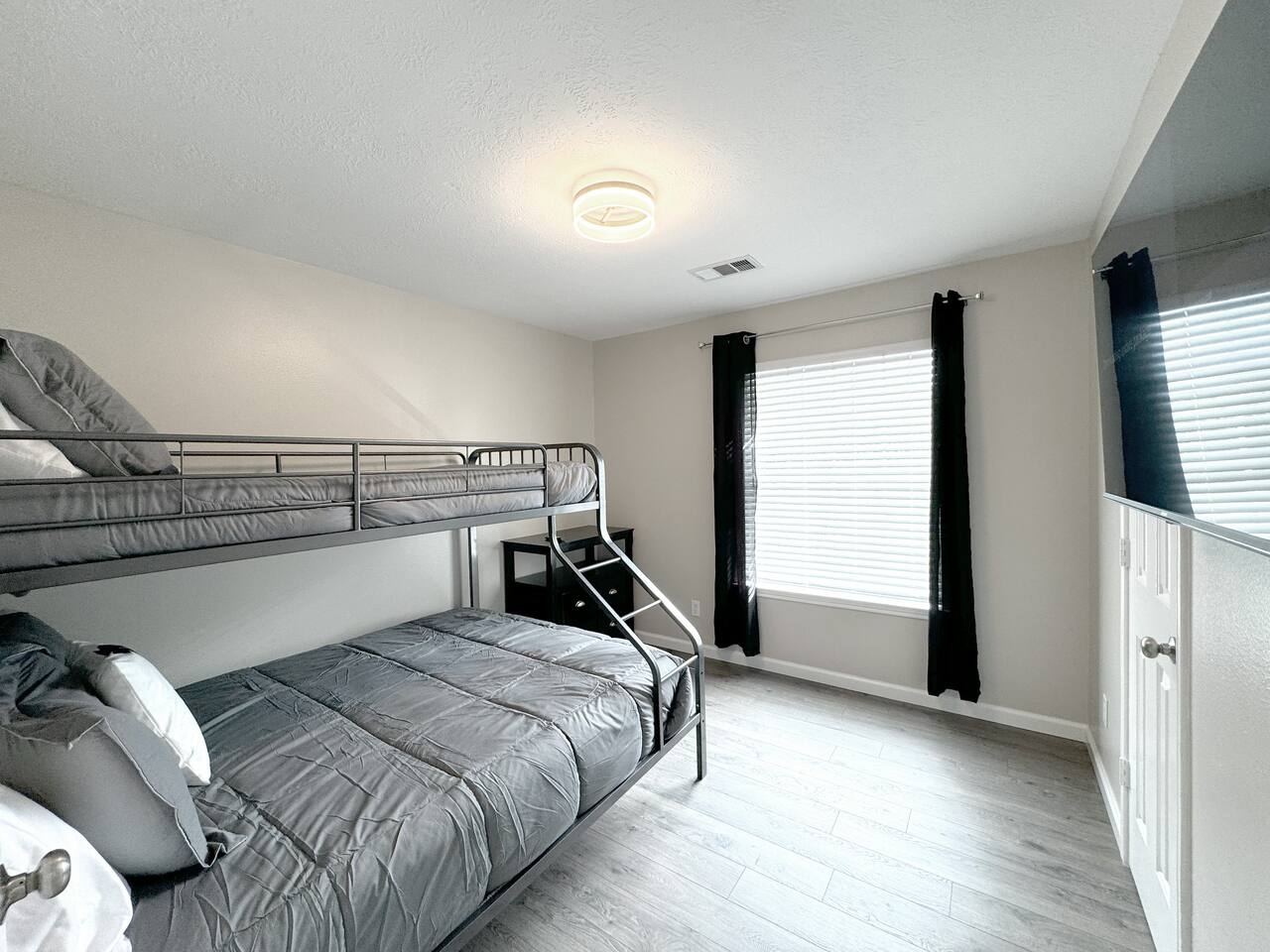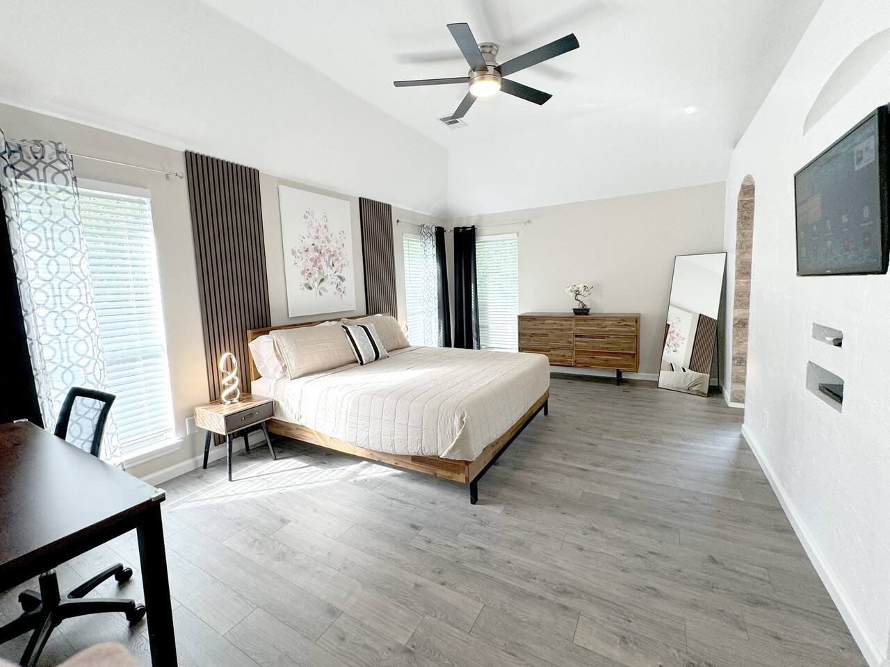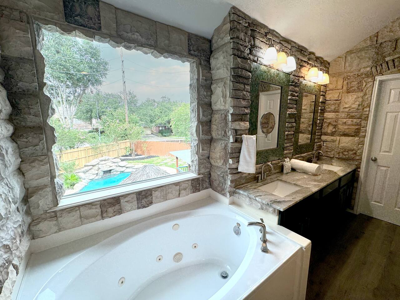 · Located in the quiet, safe neighborhood of Imperial Oaks, 3 miles from The Woodlands · On a cul-de-sac with a private pool, pool and hot-tub · 5 Bedroom, 2.5 Bathroom house recently renovated · 3 king beds, bunk bed and rollaway bed if you want to convert office back into 5th room. · 75" 4K TV and 4K TVs in every bedroom · Fully stocked kitchen · 3 workspaces with ergonomic chairs · Private backyard with mature trees, outdoor dining area, and a fire pit · Pet-friendly (with a fee)
