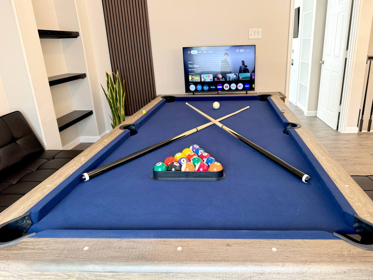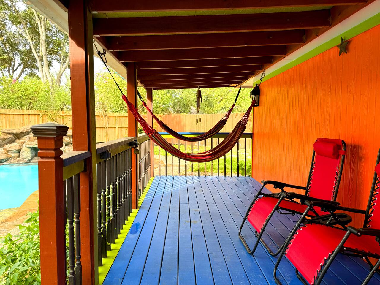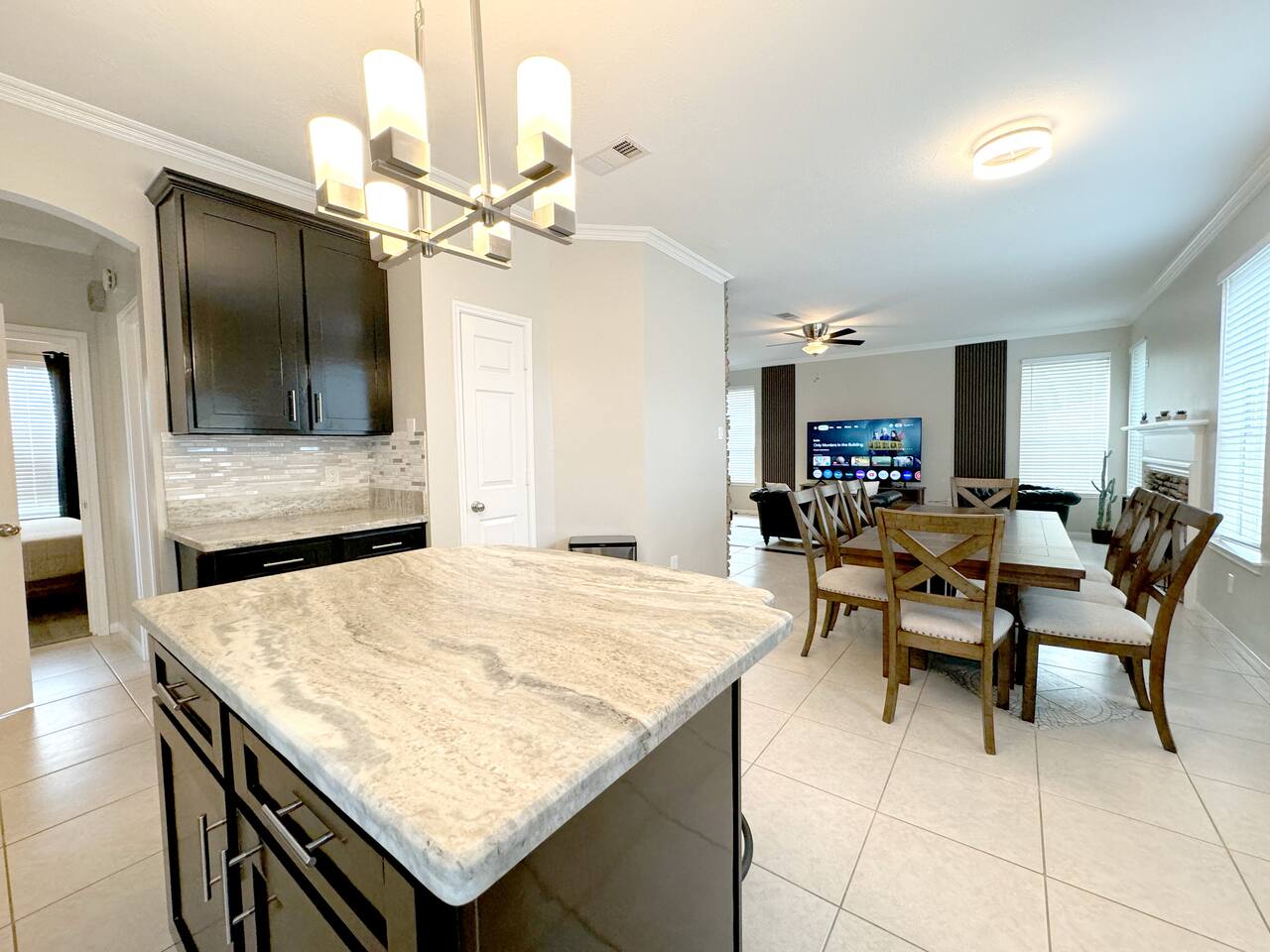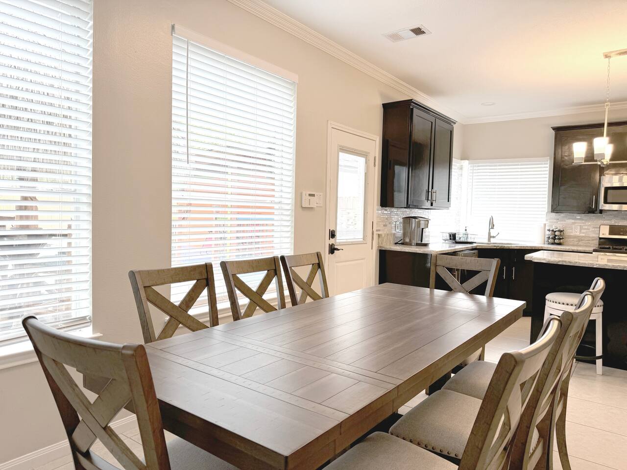 · Located in the quiet, safe neighborhood of Imperial Oaks, 3 miles from The Woodlands · On a cul-de-sac with a private pool, pool and hot-tub · 5 Bedroom, 2.5 Bathroom house recently renovated · 3 king beds, bunk bed and rollaway bed if you want to convert office back into 5th room. · 75" 4K TV and 4K TVs in every bedroom · Fully stocked kitchen · 3 workspaces with ergonomic chairs · Private backyard with mature trees, outdoor dining area, and a fire pit · Pet-friendly (with a fee)