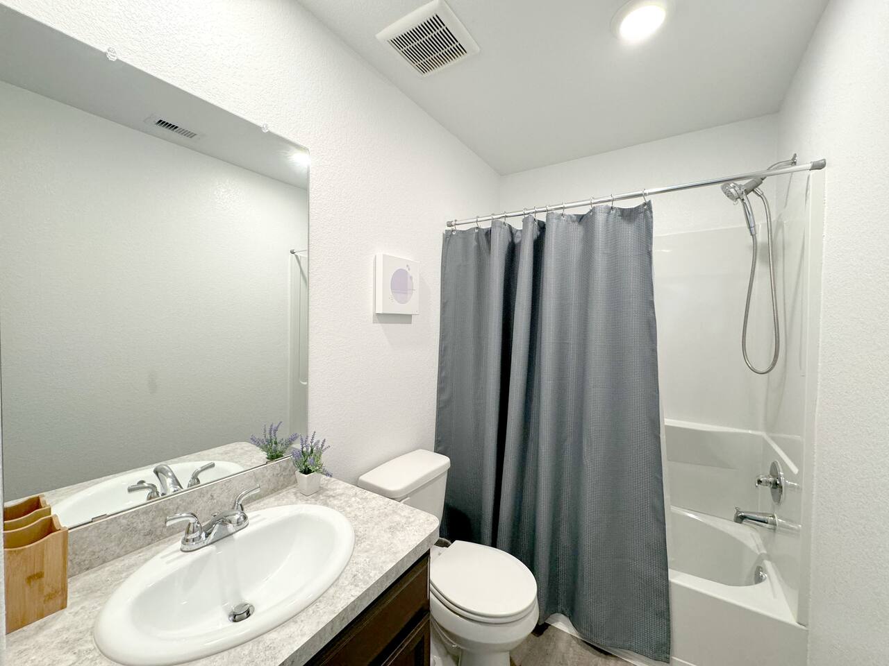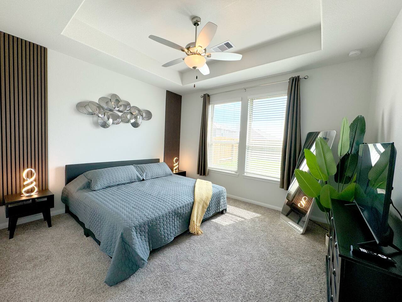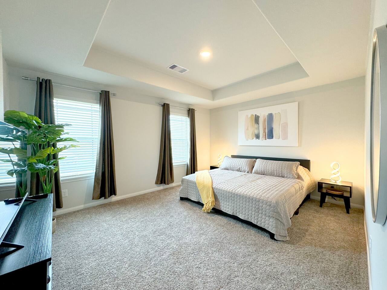 This modern 5br house is located in highly desirable safe and quiet newly built neighborhood of Caney Mills. Only minutes away from I-45, Conroe, The Woodlands and major hospitals. • 18ft ceiling in living room • Vaulted ceiling in bedrooms • 4K TV in every room (75" in living) • 4 king beds • Space for crib • Two master bedrooms • One bedroom set up as an office space, but can be converted • 2 car garage • Hot Tub • Wide driveway that can fit 4 more cars • Fully fenced backyard • Pets OK!